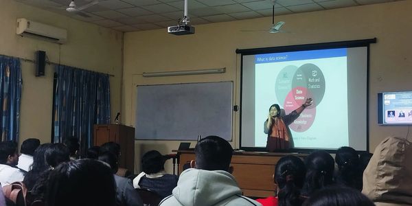 Dootika Vats lecturing on Data Science at University of Lucknow.